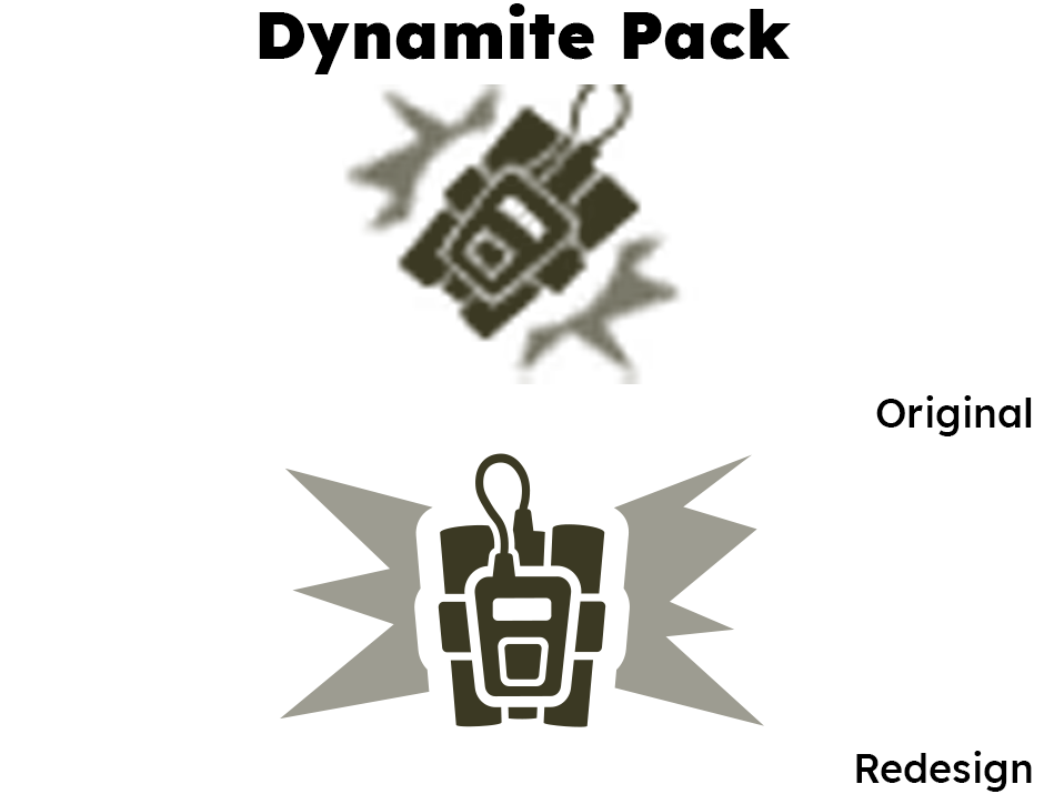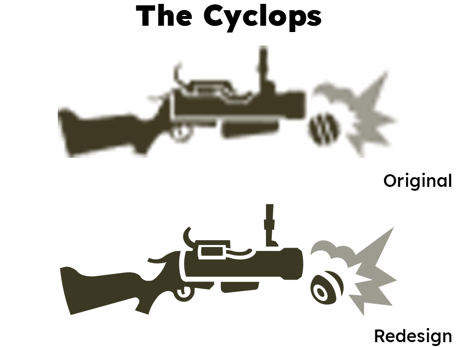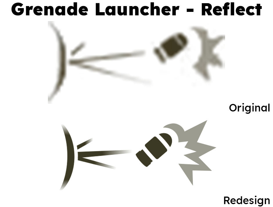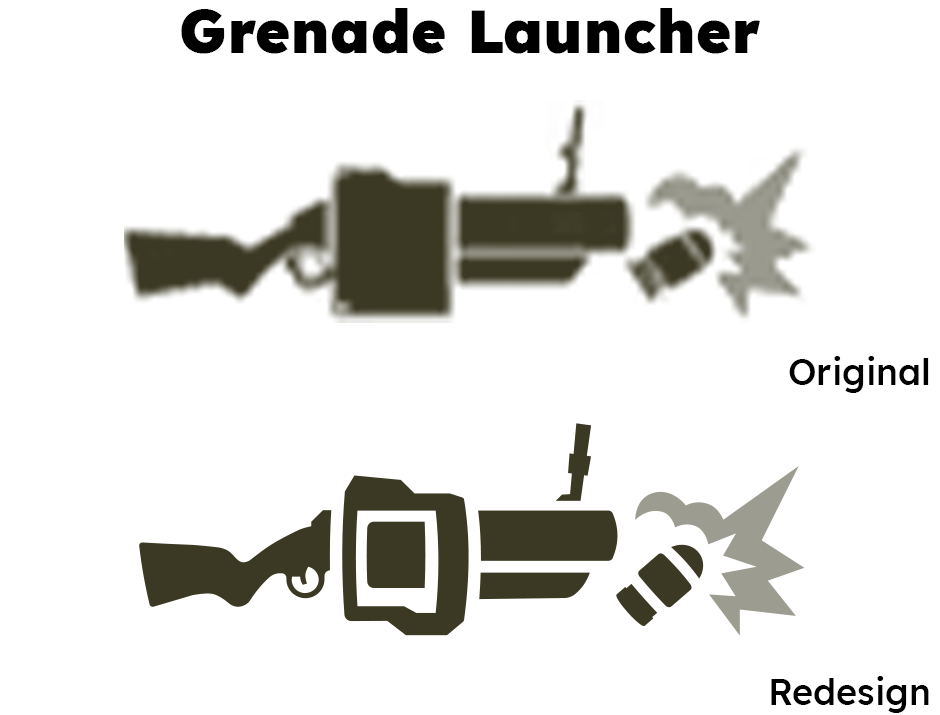 Vector icons allow for additional detail not possible in 32px sprites, like the inner chamber of this grenade launcher. The original icon also appeared far too "bulky" for such a dynamic weapon associated with knock-back and mobility, even if it was technically more accurate to the grenade launcher's in-game model.