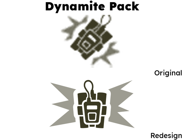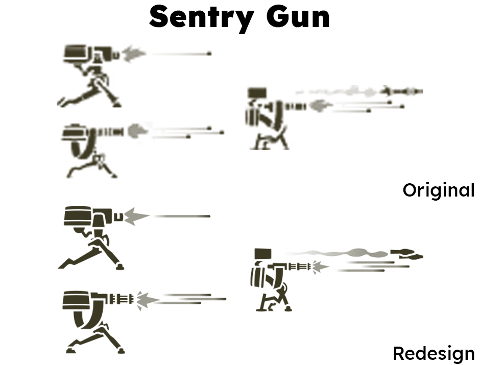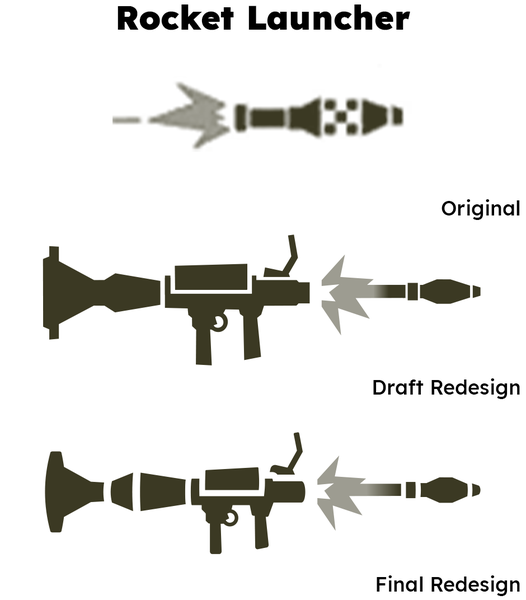 Where older icons had a flat square profile, I added rounded elements to these redesigns, particularly on gun barrels.