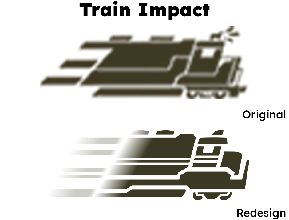 I redesigned some environmental-damage icons, like this train, to more closely resemble the in-game model. I find that transparent gradients look much nicer as vectors, which explains why the original Team Fortress 2 team tended to avoid them in 2D elements.
